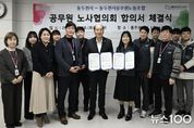뉴스100 김동초 기자 | 동두천시와 동두천시공무원노동조합은 지난 16일 동두천시청 1층 소회의실에서 공무원 노사협의회 합의서 체결식을 개최했다고 밝혔다. 이번 노사협의회는 지난 4월 노동조합 측의 노사협의회 개최 요구에 따라 추진됐으며, 안건별 담당 부서 검토와 실무협의를 거쳐 진행됐다. 노사 양측 위원들은 ▲복지포인트 인상 ▲생일이 포함된 달의 특별휴가 부여 ▲퇴직 예정자 교육비 인상 등 총 15개 요구 안건 가운데 9개 안건에 대해 최종 합의했으며, 합의 안건을 중심으로 노사 간 의견을 교환하는 시간도 가졌다. 박형덕 동두천시장은 “노사 양측이 수개월에 걸친 대화와 타협을 통해 의미 있는 합의에 이르게 됐다”며, “이번에 합의된 안건들이 조속히 이행될 수 있도록 적극적으로 노력하겠다”고 말했다. 김영란 위원장은 “이번 노사협의회에서 합의한 안건들이 직원들의 사기 진작과 행정 능률 향상에 도움이 될 것으로 기대한다”며, “앞으로도 노사 간 소통과 협력을 바탕으로 공무원 복지와 권익 향상을 위해 지속적으로 힘쓰겠다”고 밝혔다. [뉴스출처 : 경기도 동두천시]