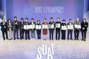 뉴스100 김동초 기자 | 수원특례시는 10월 30일 정조테마공연장에서 2025 수원디자인대상 시상식을 열고, 다니엘열방학교 등 5개 작품을 시상했다. 수상작은 건축물 분야 다니엘열방학교(영통구 원천동)·원더풀 우만(팔달구 우만동), 인테리어 분야 수원 지관서가(팔달구 우만동), 공공공간 분야 영흥숲공원(영통구 영통동)이다. 복합문화공간 111CM는 공공공간 분야 특별상(한국디자인단체총연합회장)을 받았다. 수원시가 주최·주관하고 (사)한국디자인단체총연합회가 후원하는 ‘수원디자인대상’은 디자인 자산을 확보하고, 문화가치를 창출하기 위해 우수한 디자인을 선정해 시상하는 것이다. 전문가로 구성된 작품 심사위원회가 수상작을 선정했다. 이날 시상식은 2025 수원도시건축문화제 행사 중 하나로 진행됐다. 수원시는 10월 29일부터 11월 1일까지 정조테마공연장, 수원시미디어센터, 팔달문화센터 등에서 ‘Grayfield; 회색공간’를 주제로 2025 수원도시건축문화제를 연다. 시상식 후 ‘도시의 여백, 가능성을 설계하다’를 주제로 열린 토크콘서트는 홍경구(단국대 건축학부 교수) 수원시 총괄계획가의 기조강연(패러
