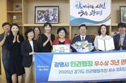 뉴스100 김동초 기자 | 광명시가 경기도가 선정하는 인권 행정추진 우수 기관으로 3년 연속 선정되며 인권 선도 도시로 확고히 자리매김했다. 시는 지난 9월 30일 경기도청 다산홀에서 열린 ‘2025년 경기인권포럼’에서 경기도 인권 행정추진 우수 자치단체 경기도지사 표창을 받았다. 경기도는 31개 시군을 대상으로 인권행정 제도와 정책 추진 성과를 종합 평가해 5개 우수 자치단체를 선정했으며, 광명시는 평가 제도가 도입된 2023년부터 올해까지 매년 수상하는 성과를 거뒀다. 이번 수상은 ▲인권행정 제도 구축(인권조례제정, 인권위원회 구성 및 운영, 인권교육 실시 등), ▲인권정책 수립(인권기본계획 수립 및 연도별 시행계획 수립, 인권실태조사 및 인권영향평가, 인권문화행사 등) ▲지역사회 인권증진 활동 ▲시민 인권 보장과 존중 문화 확산 등 전반적 성과를 전문가들로부터 인정받은 결과다. 광명시는 2012년 지방자치단체 최초로 ‘광명시민인권센터’를 개소하고, ‘인권보장 및 증진 5개년 기본계획’ 수립하는 등 인권 친화적 행정의 기틀을 마련해 왔다. 특히 인권기본계획에 재개발·재건축이 많은 도