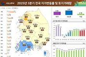 뉴스100 김동초 기자 | 국토교통부와 한국부동산원(원장 손태락)은 '25년 3분기 지가변동률 및 토지거래량을 발표했다. ★ 지가변동률 '25년 3분기 전국 지가는 0.58% 상승했다. 상승폭은 '25년 2분기(0.55%) 대비 0.03%p 확대, '24년 3분기(0.59%) 대비 0.01%p 축소된 것으로 나타났다. '25년 9월 지가변동률은 0.20%로, '25년 8월(0.19%) 대비 0.01%p, '24년 9월(0.19%) 대비 0.01%p 높은 수준으로 나타났다. (지역별) '25년 3분기 지가변동률은 수도권(0.74% → 0.80%)은 '25년 2분기 변동률 대비 높은 수준, 지방권(0.22% → 0.19%)은 낮은 수준을 보였다. (시·도) 17개 시·도 중 서울(1.07%)이 전국 평균(0.58%)을 상회했다. (시·군·구) 서울 용산구 1.96%, 서울 강남구 1.68%, 서울 서초구 1.35% 등 252개 시군구 중 40개 시군구가 전국 평균을 상회했다. 또한, 252개 시군구 중 199개 시군구가 0.00% ~ 0.80% 수준을 나타내었으며, 주로 수도권
