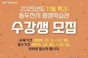 뉴스100 김동초 기자 | 동두천시 미래교육진흥원 평생학습관은 시민의 자기계발과 여가활동을 지원하기 위해 ‘11월 특강 수강생’을 모집한다고 21일 밝혔다. 이번 특강은 계절감과 시민 수요를 반영한 다양한 주제로 구성됐으며, 남녀노소 누구나 참여할 수 있는 생활 밀착형 프로그램으로 운영된다. 수강 신청은 10월 31일까지 동두천시 미래교육진흥원 홈페이지에서 온라인으로 접수할 수 있다. 11월 특강은 ▲미리 만나는 크리스마스 다이닝 ▲윈터 대비 손뜨개 클래스 ▲새해 마음을 담은 보자기 클래스 ▲이탈리아 르네상스 미술가들 ▲100세 시대 자산관리 등 총 5개 강좌가 개강할 예정이다. 박형덕 시장은 “시민들이 일상 속에서 배움의 즐거움을 느끼고 서로 소통할 수 있도록 실생활에 도움이 되는 프로그램을 마련했다”라며 “앞으로도 지역민이 주체가 되는 평생학습 문화를 확산하기 위해 노력하겠다”라고 말했다. [뉴스출처 : 경기도 동두천시]
