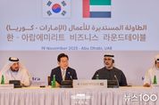 뉴스100 김동초 기자 | 아랍에미리트(UAE)를 국빈 방문한 이재명 대통령은 19일(현지시간) "인공지능 중심의 첨단산업 협력을 통해 미래 성장 동력을 함께 창출하자"고 제시했다. 또 "청정 에너지와 방산 분야 협력을 고도화해 세계 최강국으로 함께 성장할 모멘텀을 확보하자"고도 했다. 이 대통령은 이날 아부다비 소재 한 호텔에서 열린 '한-UAE 비즈니스 라운드 테이블' 행사에 참석해 양국 정부 및 기업의 교류 확대 필요성을 강조하며 이같이 언급했다. 이번 행사는 이 대통령의 UAE 국빈 방문을 계기로 개최된 경제행사로 한국경제인협회, 대한무역투자진흥공사, UAE 대외무역부, 아부다비 상공회의소가 공동 주최했으며, 양국 정부, 기관, 기업 관계자 40여 명이 함께했다. 이 대통령은 기조연설을 통해 "한국과 UAE는 바라카 원전 건설, 아크부대 파견 등으로 서로의 발전을 이끌어오며 진정한 형제의 나라이자 동반자인 라피크(Rafiq)로 거듭나고 있다"라며, "2071년까지 UAE가 세계 최고 국가로 도약하기 위한 최적의 파트너가 한국"임을 강조했다. 아랍어 라피크(Rafiq)는 먼 길을 함께하는 동