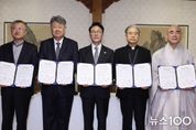 뉴스100 김동초 기자 | 김민석 국무총리는 11월 24일 오전 한국교회총연합 대표회장 김종혁 목사, 한국천주교주교회의 의장 이용훈 주교, 원불교 교정원장 나상호 교무, 대한불교조계종 총무부장 성웅스님과 만나, 정부와 종교계 간 “상생협력 원탁회의 구성을 위한 협약” 및 “생명존중 및 자살예방을 위한 협약”을 체결했다, 이번 협약은 사회적 난제를 다루는데 정책적 접근만으로는 한계가 있으며, 국민의 마음과 삶까지 살피기 위해 국민 곁에서 마음을 보듬어온 종교계의 지혜가 필요하다는 인식 아래 마련됐다. 특히, 국민의 생명과 안전을 지키기 위해 자살률을 낮추는 데 정부와 종교계의 협력이 필요하다는 공감대를 바탕으로, 생명존중 및 자살예방을 위한 효과적인 협력사업을 추진하기 위해 체결됐다. 이날 협약에 따라 정부와 종교계는 우리나라의 주요한 사회 문제에 대해 함께 논의하고 합리적인 해결책을 모색하기 위해 협력하기로 했으며, 지속가능성을 확보하기 위해 현안별로 국무총리가 주재하는 원탁회의를 정례적으로 운영하기로 했다. 첫 번째 주제로 생명존중 및 자살예방 분야 협력방안을 논의했으며, 정부와 종교계는 ▴생명