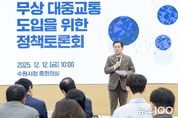 뉴스100 김동초 기자 | 수원특례시는 12일 시청 중회의실에서 ‘수원시 무상대중교통 도입 정책토론회’를 열고, ‘수원형 무상대중교통’ 도입 정책 방향을 공유했다. 이날 정책토론회는 주제 발표와 종합토론으로 진행됐다. 김채만 경기연구원 선임연구위원이 ‘미래 대중교통 정책방향-쿠리치바 대중교통 사례’, 김숙희 수원시정연구원 선임연구위원이 ‘수원시 무상대중교통 도입 방향’을 주제로 발표했다. 수원시는 사회초년생 청년과 어르신의 교통비 부담을 덜어주기 위해 내년 1월 1일부터 무상대중교통 지원사업을 시작한다. 지원 대상은 19~23세 청년, 70세 이상 어르신이다(신청일 기준). 19~23세 청년이 K-패스 교통카드로 대중교통을 이용하면 한 달에 최대 2만 3100원(연 27만 7200원)을 환급한다. 어르신은 농협에서 우대 교통카드(G-PASS)를 발급받아 사용하면 실제 사용 금액에 대해 분기별 최대 6만 9300원(연 27만 7200원 한도)를 지원한다. 종합토론에는 아주대학교 오영태 교수, 한국교통연구원 박준식 본부장, 경기대학교 김정화 교수, 경기도 광역교통정책과 윤태완 과장이 참여했