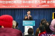 뉴스100 김동초 기자 | 용인특례시는 12일 용인시처인장애인복지관이 한해 동안 나눔을 실천한 후원자와 자원봉사자를 위한 ‘우리동네 온기가득 송년회’를 열었다고 밝혔다. 이 행사에 참석한 이상일 용인특례시장은 장애인복지를 위해 헌신한 후원자와 자원봉사자, 복지관 관계자들을 격려하고, 감사의 마음을 나눴다. 이상일 시장은 “처인장애인복지관은 장애인 복지 수준 향상을 위해 훌륭한 활동을 해왔다”며 “이 자리에 계신 후원자와 자원봉사자 여러분의 헌신적인 노력은 장애와 비장애의 벽을 허물고, 장애인에게 희망을 전달했다”고 말했다. 이 시장은 “용인특례시는 장애인 복지 활동과 정책을 선도적으로 운영하고 있고, 장애인을 위한 시설개선에도 적극 노력하고 있다”며 “장애인복지관에 많은 후원이 모이고 있고, 이 마음이 용인특례시를 따뜻한 공동체 사회로 만들고 있다”고 했다. 이날 행사에는 이상일 시장을 비롯해 지역 주요 내빈, 후원자, 자원봉사자, 복지관 이용자 등 200여 명이 참석했다. 행사는 식전 공연을 시작으로 송년회 영상 시청, 송년사 및 축사, 유공자 표창, 응원 메시지 퍼포먼스 순으로 진행
