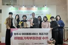뉴스100 김동초 기자 | 양주시가 지난 10일 성평등가족부가 실시한 ‘2025년 아이돌봄서비스 제공기관 평가’에서 양주시 가족센터가 우수기관으로 선정돼 성평등가족부 장관상을 수상했다고 전했다. 시상식은 지난 10일 서울 종로구 HW컨벤션센터에서 열린 ‘2025년 아이돌봄서비스 소통의 날’행사에서 진행됐다. 평가는 전국 225개 아이돌봄서비스 제공기관을 대상으로 서비스 성과, 실적, 아이돌보미 확보, 기관 운영 등 4개 영역, 12개 지표를 기준으로 이뤄졌다. 평가 결과, 양주시는 도농지역으로 분류된 56개 기관 중 A등급 16곳에 포함됐으며, 그중 우수기관으로 선정되는 성과를 이뤘다. 이창수 가족아동과장은 “아이돌봄 지원사업이 원활히 이뤄질 수 있도록 힘쓴 양주시가족센터와 아이돌보미분들께 감사를 드린다”며 “앞으로도 양육 공백 없는 ‘아이 키우기 좋은 도시’ 조성에 최선을 다하겠다”고 전했다. 이은순 양주시가족센터장 역시 “아이돌보미 선생님들의 노고에 감사를 드리며, 부모와 아이 모두 만족할 수 있는 환경 조성을 위해 지속적인 소통과 지원을 이어가겠다”고 말했다. ‘아이돌