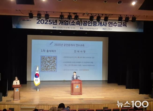 뉴스100 김동초 기자 | 경기도 군포시는 9월 4일 개업·소속 공인중개사 180명을 대상으로 2025년 공인중개사 연수교육을 실시했다.