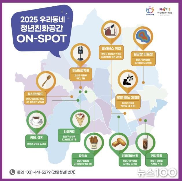 뉴스100 김동초 기자 | 안양시는 청년들이 가까운 카페나 연습실 등을 사용할 수 있도록 지원하는 생활밀착형 청년공간 지원사업 ‘온스팟(ON:SPOT) 프로젝트’를 처음으로 시행한다고 5일 밝혔다.