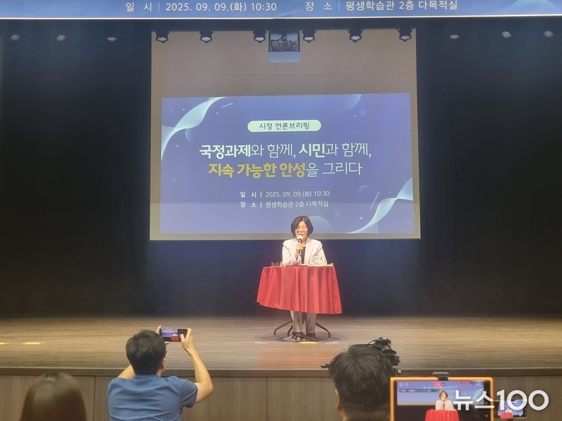 뉴스100 김동초 기자 | 안성시는 9일, 관내 평생학습관에서‘국정과제와 함께, 시민과 함께, 지속 가능한 안성을 그리다’를 주제로 언론브리핑을 개최했다.