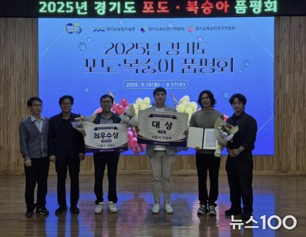 뉴스100 김동초 기자 | 시흥시에서 생산된 포도와 복숭아가 지난 9월 17일 경기도농업기술원에서 열린 ‘2025년 경기도 포도ㆍ복숭아 품평회’에서 3관왕의 성과를 거뒀다.