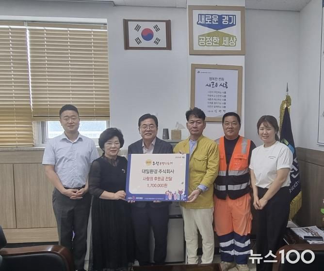 뉴스100 김동초 기자 | ㈜대일환경은 민족 최대 명절인 추석을 맞아 지역 내 소외된 이웃을 위해 지난 9월 18일 신천동 행정복지센터(동장 신화철)에 후원금 170만 원을 전달했다.