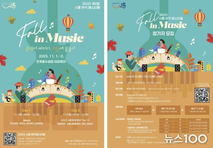뉴스100 김동초 기자 | 시흥시는 오는 11월 1일부터 2일까지 시흥 은계호수공원에서 ‘2025년 제2회 시흥뮤직페스티벌’ 개최를 앞두고 참가팀을 모집한다. 올해 페스티벌 주제는 ‘시흥 Fall in Music -음악에 빠지다, 가을에 물들다- ’로 ‘가을’을 주제로 한 다양한 장르의 전국 단위 음악경연대회 및 축하공연으로 꾸며진다.