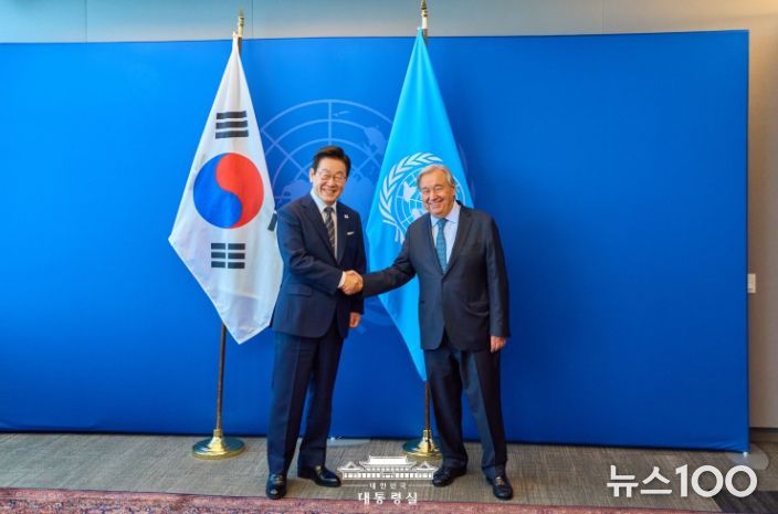 뉴스100 김동초 기자 | 제80차 유엔총회 참석으로 대한민국의 국제사회 귀환을 선언한 이재명 대통령은 안토니우 구테레쉬 유엔 사무총장과의 면담에 이어 우즈베키스탄 대통령 및 체코 대통령과 취임 후 첫 정상회담을 갖는 등 외교의 폭을 넓혀가는 모습이다.