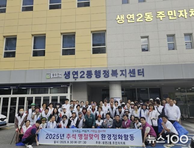 뉴스100 김동초 기자 | 동두천시 생연2동 행정복지센터는 9월 30일 추석을 앞두고 사회단체 회원과 동 직원 등 80여 명이 참여한 가운데 관내 환경정화 활동을 실시했다.