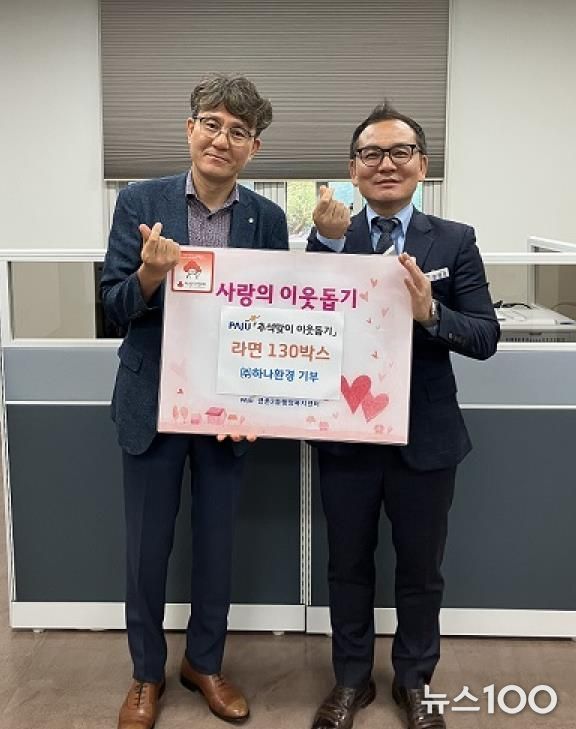 뉴스100 김동초 기자 | 금촌2동이 추석 명절을 앞두고 ㈜하나환경으로부터 라면 130박스를 기탁 받았다.