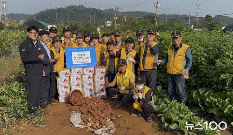 뉴스100 김동초 기자 | 파주시 조리읍 실버경찰대는 지난 1일 직접 가꾼 고구마 20상자를 수확해 행복나눔협의체(위원장 오승환)에 기탁했다고 밝혔다.