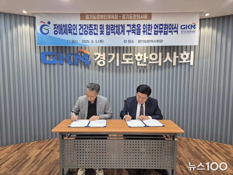 경기도장애인체육회(회장: 김동연 경기도지사)와 경기도한의사회(회장: 이용호)는 6월 5일 경기도한의사회 회의실에서 업무협약식을 개최했다.