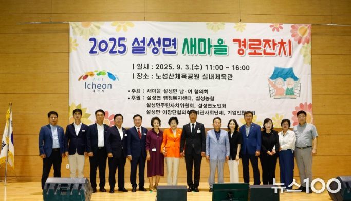 뉴스100 김동초 기자 | 새마을 설성면 남녀지도자협의회는 9월 3일, 설성면 체육공원 내 실내체육관에서 설성면 어르신들의 만수무강을 기원하는 ‘2025 새마을 설성면 경로잔치’를 열었다고 밝혔다.