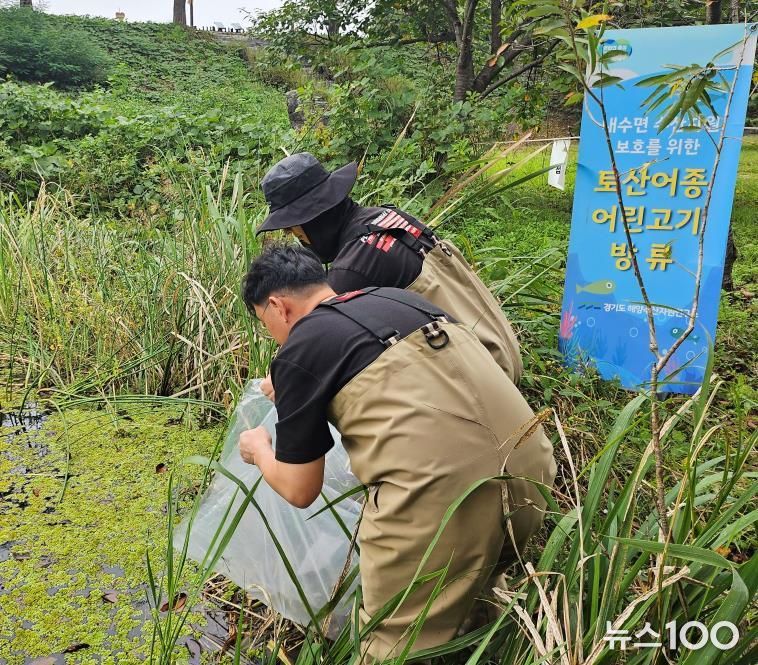 뉴스100 김동초 기자 | 경기도해양수산자원연구소가 토종 민물고기 종 보존과 하천 생태계 복원을 위해 경기도 보호 어종인 버들붕어 치어 1천 마리를 9월 30일 광주시 경안천습지생태공원에 방류했다.