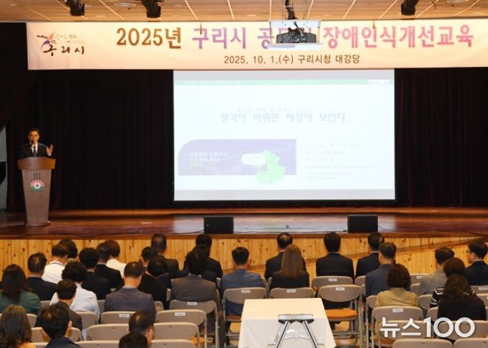 뉴스100 김동초 기자 | 구리시는 10월 1일 시청 대강당에서 보건복지부 산하 한국장애인개발원 고성호 전문 강사를 초빙해 전 직원을 대상으로 '2025년 장애 인식 개선 교육'을 실시했다고 밝혔다.