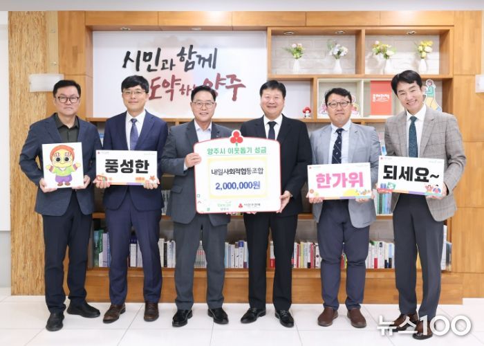 뉴스100 김동초 기자 | 양주시가 지난 30일 내일사회적협동조합(이사장 송영진)로부터 성금 200만원을 기탁받았다.