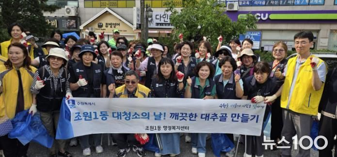 뉴스100 김동초 기자 | 수원시 장안구 조원1동은 추석과 APEC을 맞아 추진 중인 국민 참여 운동인 「대한민국 새단장」 캠페인의 일환으로 추석맞이 대청소를 실시했다.
