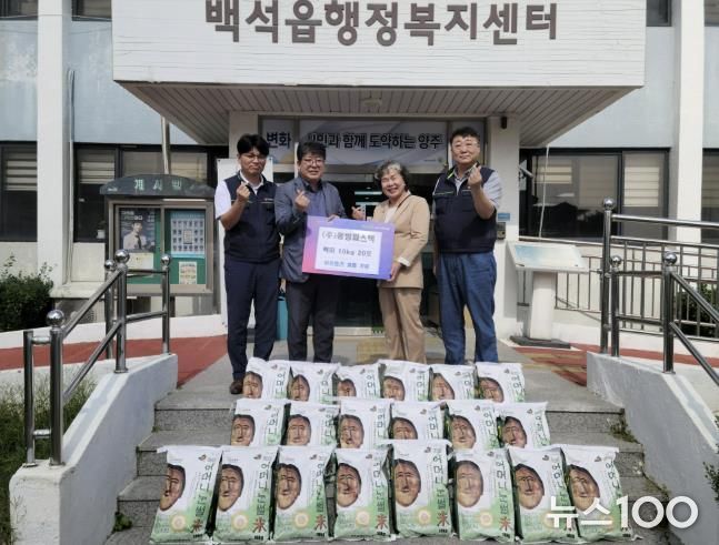 뉴스100 김동초 기자 | 양주시 백석읍이 최근 ㈜동방파스텍에서 추석 명절을 맞아 어려운 이웃을 돕기 위해 백미 10kg 20포(총 200kg)를 기부했다고 밝혔다.