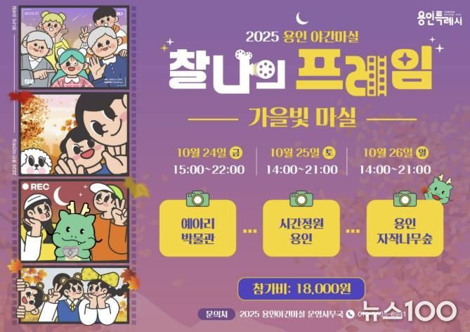 뉴스100 김동초 기자 | 용인특례시는 13일부터 15일까지 지역의 가을 야경을 만끽할 수 있는 ‘2025 용인 가을빛마실’ 참가자 315명을 모집한다고 10일 밝혔다.