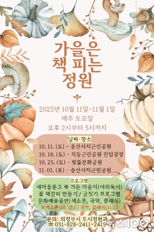 이와 함께 시는 10월 11일부터 11월 1일 매주 토요일 오후 2시부터 5시까지 총 4회에 걸쳐 송산사지 근린공원, 직동 진입광장, 빛뜰문화공원에서 ‘가을은 책피는 정원’ 행사를 순회 개최한다. 새마을 이동도서관과 협업해 도서 대여와 어린이 글짓기 교실을 열고, 지역 음악인들과 함께하는 클래식‧국악‧색소폰 공연, 꽃 책갈피 만들기 체험 프로그램도 진행할 예정이다.