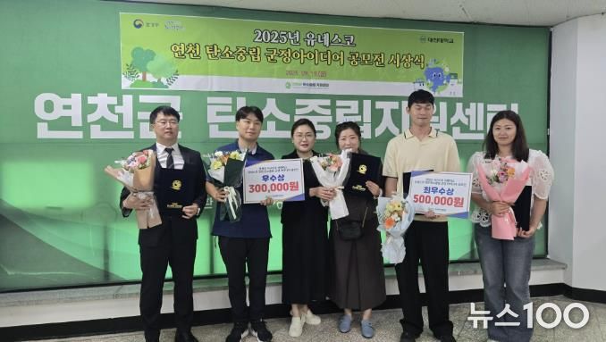 뉴스100 김동초 기자 | 연천군 탄소중립지원센터는 지난 9월 19일, ‘유네스코 연천 탄소중립 군정 아이디어 공모전’ 시상식을 개최했다. 이번 공모전은 기후 위기 극복과 탄소중립 실현을 위한斬신하고 실천 가능한 군정 아이디어를 발굴하기 위해 추진됐다.