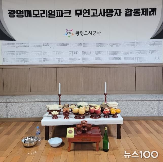 뉴스100 김동초 기자 | 광명도시공사는 지난 10월 6일 추석을 맞아 일직동 메모리얼파크 무연고단에 안치된 영령들의 외로운 넋을 기리는 합동제례를 봉행했다.