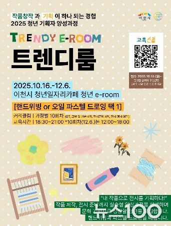 ▲오일파스텔 드로잉 ▲핸드위빙으로 구성하여 예술 작품 제작 및 전시를 준비 및 운영함으로써 문화 기획과 창작 역량을 동시에 강화하는 본 과정은 19세 이상 39세 이하 관내 청년이면 누구나 10월 13일부터 큐알(QR)코드를 통해 신청할 수 있다.