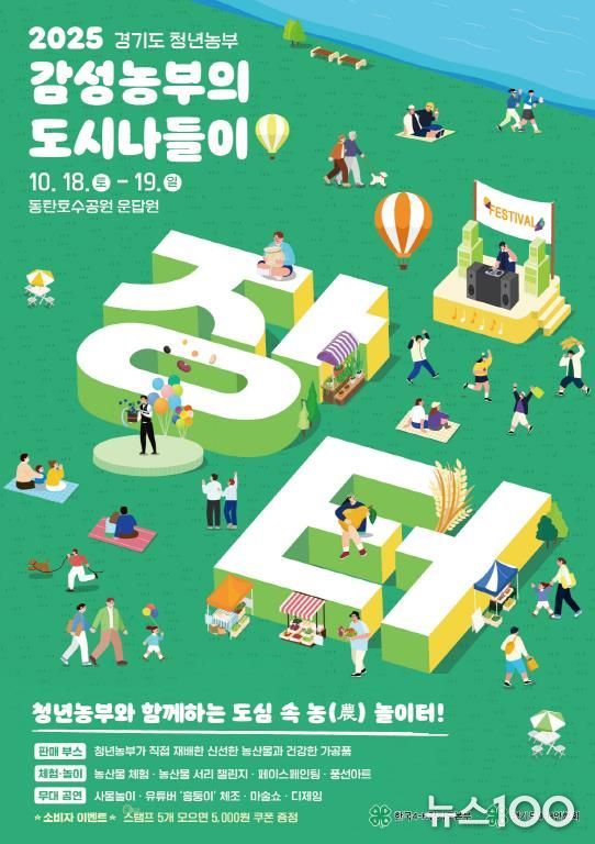 뉴스100 기자 | 경기도농업기술원은 오는 18, 19일 이틀간 화성시 동탄호수공원 운답원에서 청년농부와 도시민이 함께 소통하는 청년농업인 장터 ‘감성농부의 도시나들이’를 개최한다.