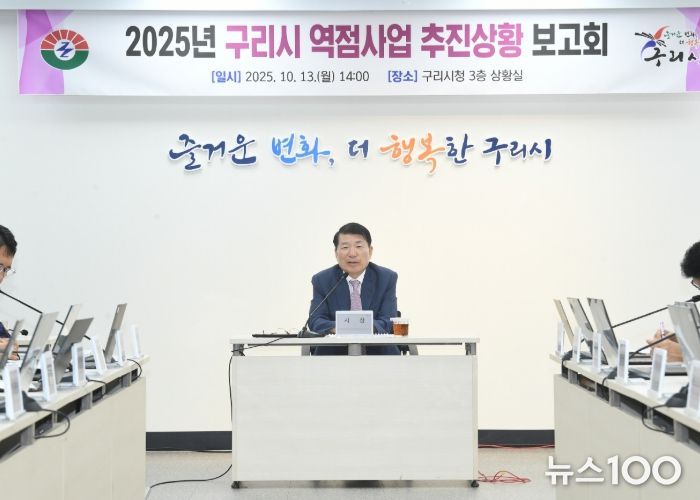 뉴스100 김동초 기자 | 구리시는 지난 10월 13일 시청 3층 상황실에서 시정 주요 역점사업의 추진 현황을 점검하기 위한 '역점사업 추진 상황 보고회'를 개최했다.