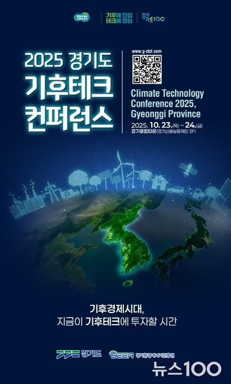 뉴스100 기자 | 경기도는 10월 23~24일 수원 경기융합타운(경기신용보증재단 3층)에서 ‘2025 경기도 기후테크 컨퍼런스’를 개최한다.