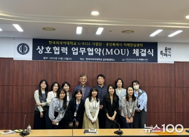 뉴스100 김동초 기자 | 용인특례시 3개 구 보건소 치매안심센터는 지난 15일 한국외국어대학교RISE(지역혁신중심 대학지원체계)사업단과 지역사회 치매 관리를 위한 업무협약을 했다고 16일 밝혔다.
