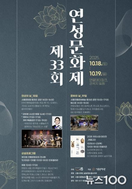 뉴스100 김동초 기자 | 시흥시 지방보조금사업으로 시흥문화원이 주관하는 ‘2025년 제33회 연성문화제’가 오는 10월 18일부터 19일까지 이틀간 시흥 연꽃테마파크와 관곡지 일원에서 개최된다고 밝혔다.