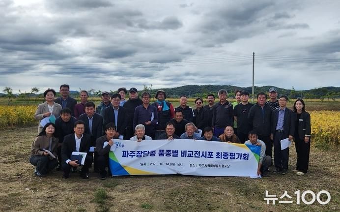 뉴스100 김동초 기자 | 파주시는 지난 14일 장단면 거곡리에 위치한 파주시 작물실증시험포장에서 파주장단콩 품종별 비교 전시포 최종 평가회 및 간담회를 개최했다고 밝혔다.