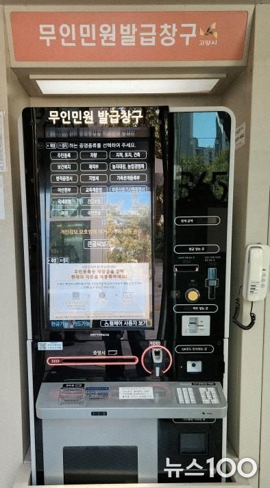 뉴스100 김동초 기자 | 고양특례시 일산서구는 지난 15일, 노후로 인해 고장이 잦았던 주엽1동 행정복지센터의 무인민원발급기를 교체 설치했다고 밝혔다.