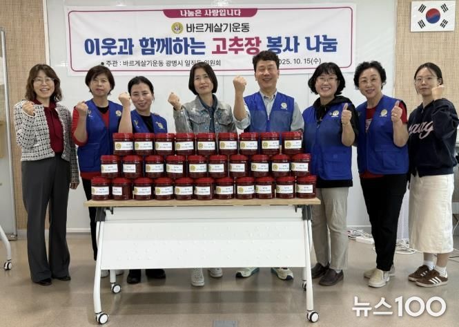 뉴스100 김동초 기자 | 광명시 일직동 바르게살기위원회는 지난 15일 관내 어려운 이웃을 돕기 위해 ‘이웃과 함께 하는 고추장 나눔 봉사’ 활동을 실시했다.