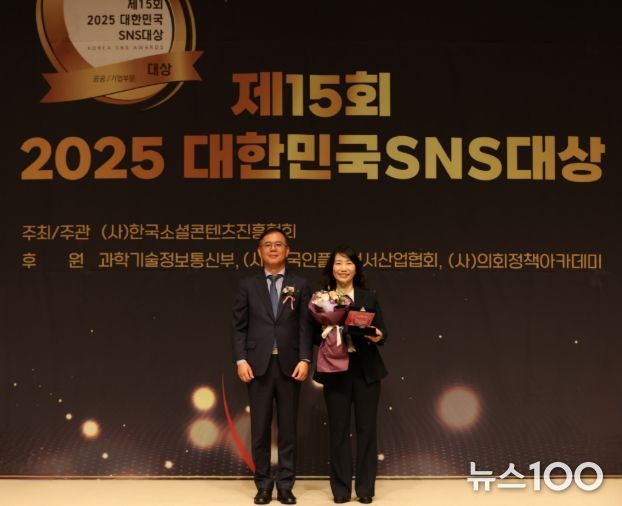 뉴스100 김동초 기자 | 화성특례시(시장 정명근)가 16일 프레스센터에서 열린 ‘제15회 2025 대한민국 SNS 대상’에서 공공부문 기초지자체 분야 최우수상을 수상했다.