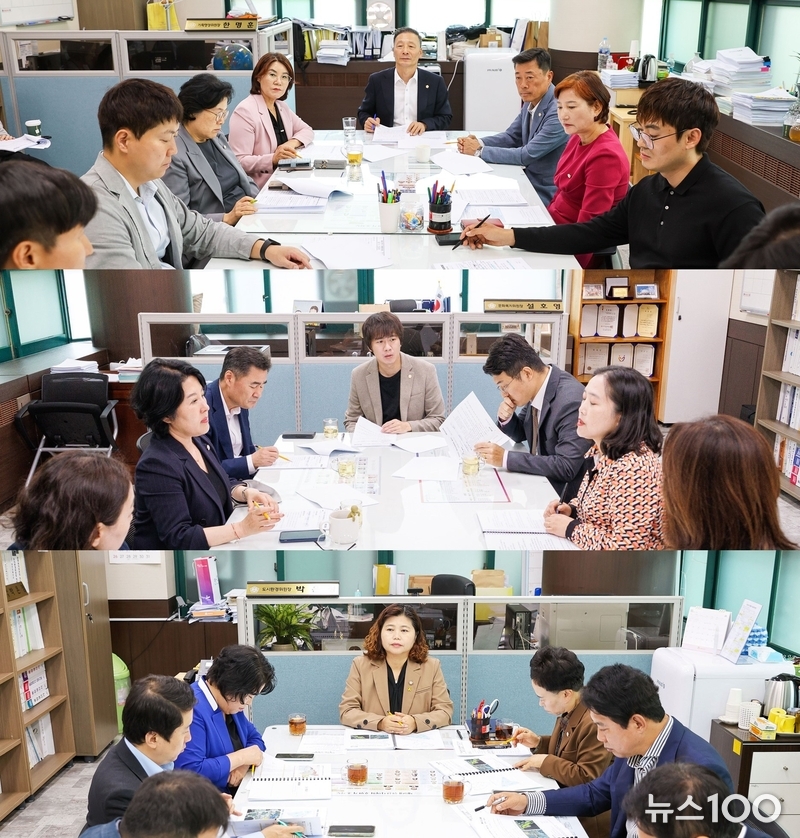 사진1 설명: 안산시의회 3개 상임위원회가 지난 14일과 15일 각 상임위원장실에서 안산시 집행부와 간담회를 개최했다. 사진 위부터 차례대로 기획행정위원회와 문화복지위원회, 도시환경위원회가 간담회를 진행하고 있는 모습.