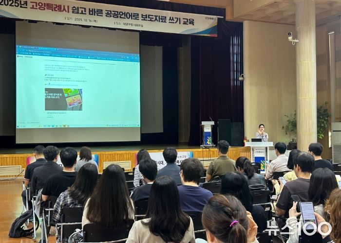 뉴스100 김동초 기자 | 고양특례시는 지난 16일 덕양구청 대회의실에서‘쉽고 바른 공공언어로 보도자료 쓰기 교육'을 실시했다고 밝혔다.