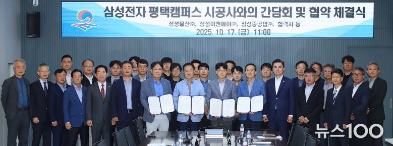 뉴스100 김동초 기자 | 평택시는 17일에 관내 시공 예정인 삼성전자 평택캠퍼스 대형시공사와 간담회 및 협약체결식을 개최했다.
