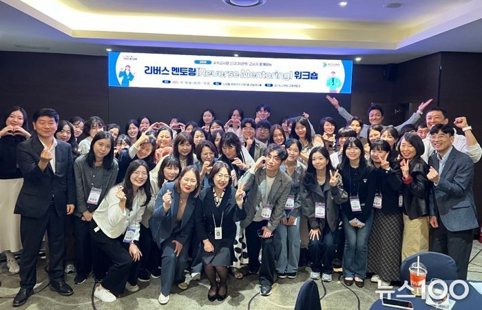 뉴스100 김동초 기자 | 경기도교육청이 18일 수원 앰버서더에서 수석・신규(저경력)교사의 상호 성장과 협력적 교직 문화 조성을 위한 ‘2025 리버스 멘토링(Reverse Mentoring) 워크숍’을 개최했다.