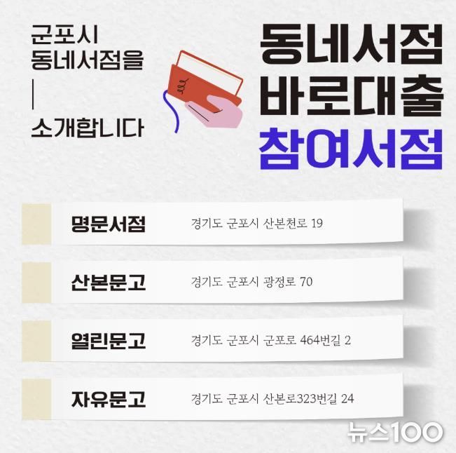 뉴스100 김동초 기자 | 군포시는 2021년부터 도서관에 소장되지 않은 신간 도서를 시민이 가까운 동네서점에서 직접 대출·반납할 수 있는 ‘동네서점 바로대출 서비스’를 운영하고 있다.