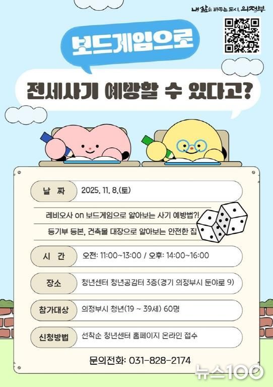 뉴스100 김동초 기자 | 의정부시는 11월 8일 운영 예정인 전세사기 피해 예방 교육용 보드게임 프로그램 ‘레비오사 보드ON’에 참여할 청년을 모집한다.