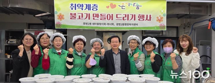 뉴스100 김동초 기자 | 광명시 광명2동 새마을부녀회는 지난 20일 광명2동 행정복지센터에서 ‘온기 나눔 사랑의 불고기’ 행사를 열었다.