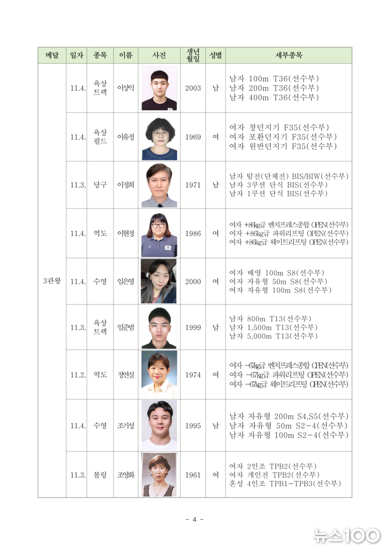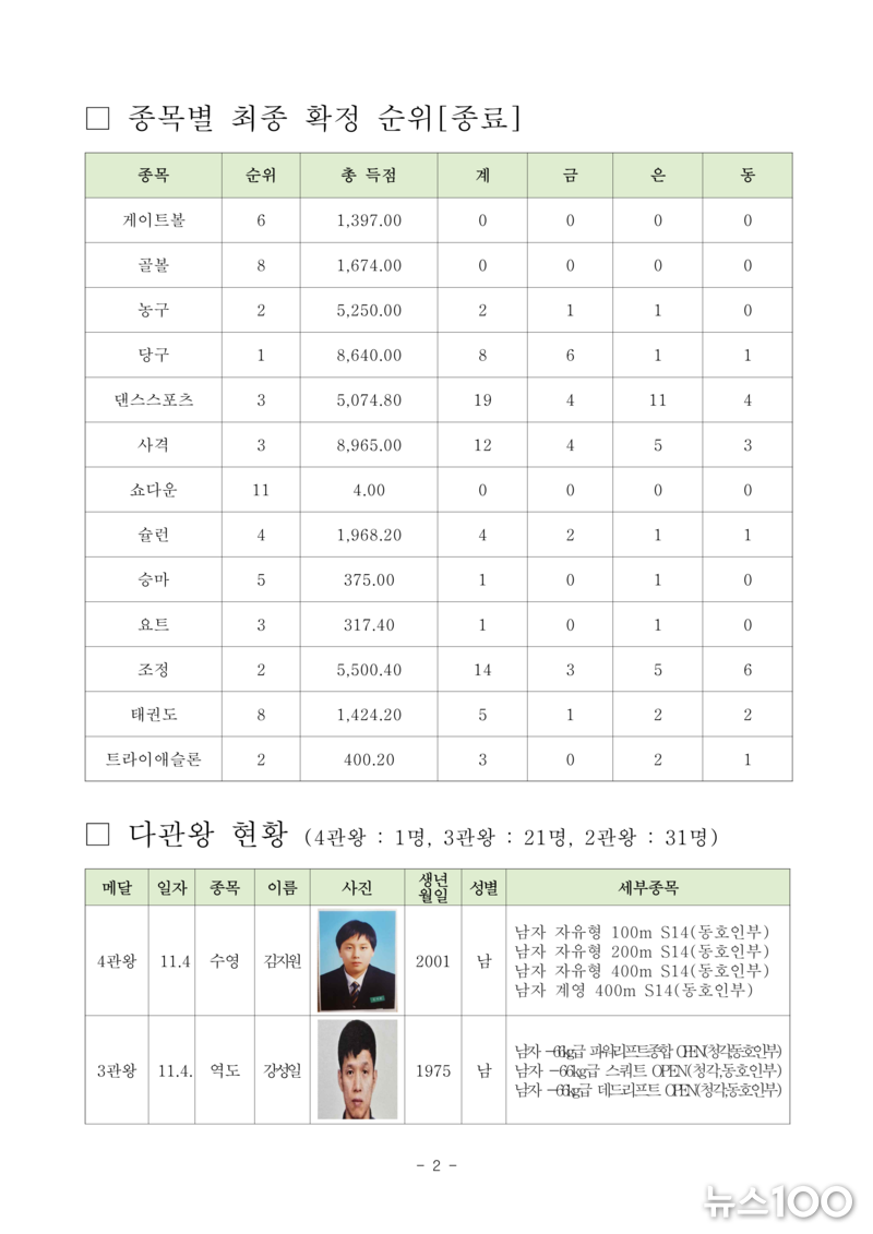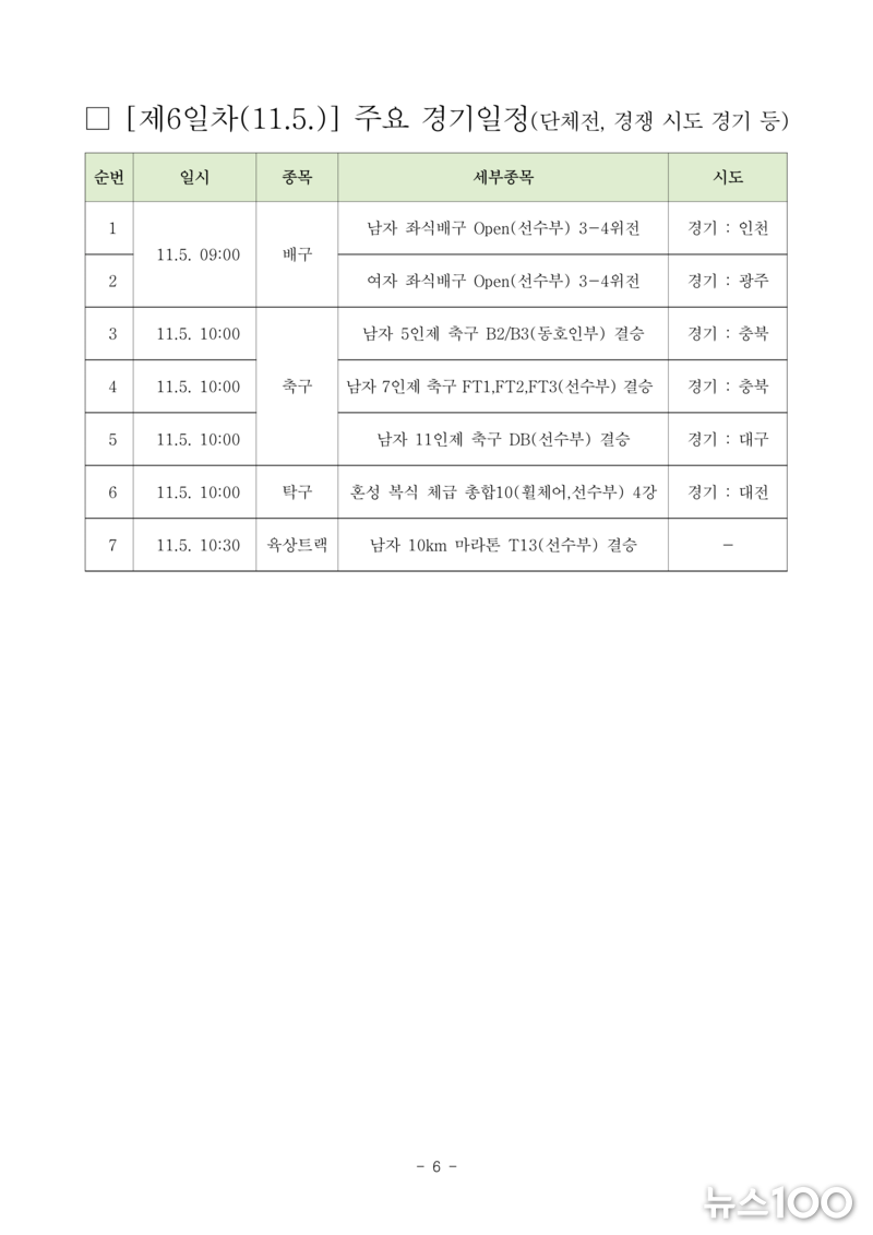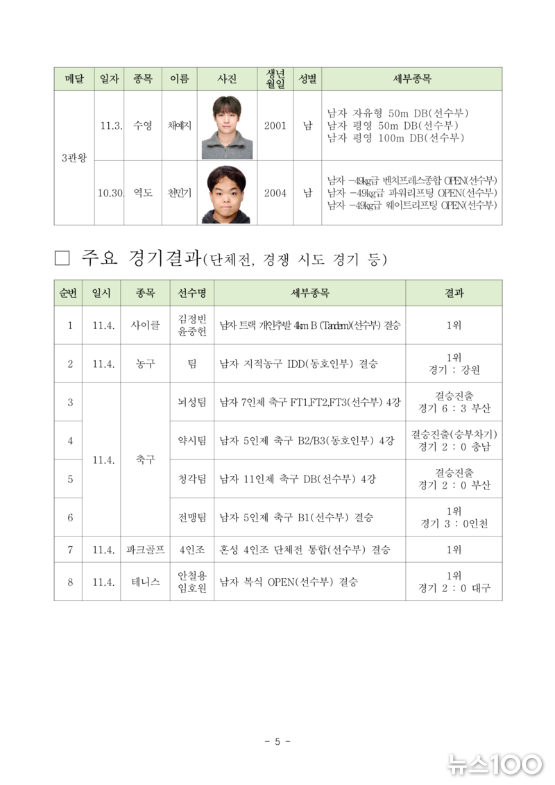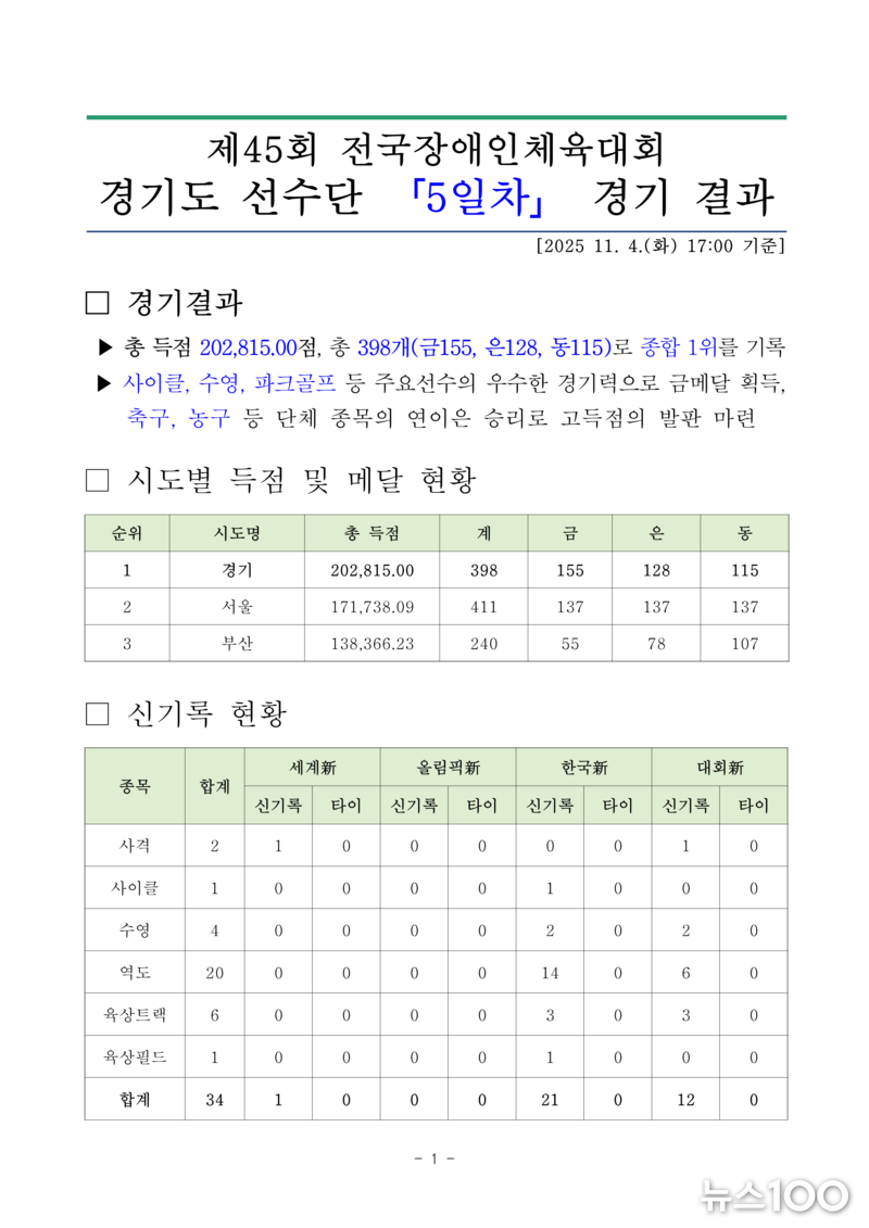 제45회 전국장애인체육대회 경기도 선수단 「5일차」 경기 결과