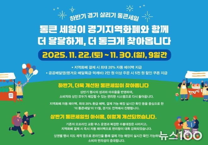 뉴스100 김동초 기자 | 경기도시장상권진흥원은 도내 소상공인의 매출 회복과 지역 소비 진작을 위해 추진한 ‘2025년 경기 살리기 통큰 세일(이하 통큰 세일)’ 상반기 운영 성과와 하반기 추진 계획을 다룬 「경기도 소상공인 경제 이슈 브리프 VOL.10」을 발간했다고 4일 밝혔다.